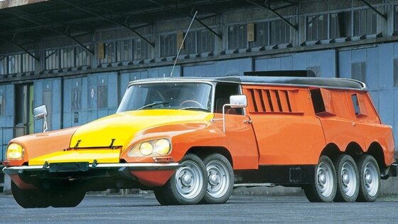 Michelin PLR. Данный автомобиль был представлен в 1972 году. Начать стоит с того, что он имеет не самый обычный внешний вид. Однако даже это не главная особенность. В конструкции применялось два двигателя V8 от Chevrolet. Производитель решил представить в этом авто сразу 10 колёс. Максимальная скорость со всем этим оснащением составляла 160 километров в час. В качестве основы для создания чудо-машины решили взять модель Citroen DS. Интересна и компоновка колёс. В задней части представлено сразу три оси, а в передней только две.