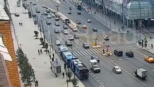 На кадрах видно, как водитель поворачивает с Большой Дорогомиловской улицы на Украинский бульвар. Однако тут же он заезжает на тротуар возле ресторана сети быстрого питания напротив торгового центра «Европейский». На протяжении двух минут машина двигается по тротуару, объезжая пешеходов.