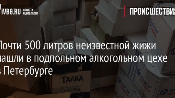 Почти 500 литров неизвестной жижи нашли в подпольном алкогольном цехе в Петербурге