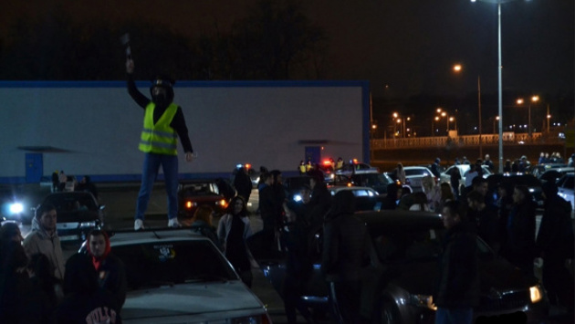 Стритрейсеры устроили хоровод вокруг автомобиля ДПС у ипподрома в Самаре