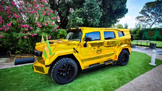 Компания Dartz выставила на продажу один из десяти уникальных внедорожников Prombron Aladeen Edition. Эксцентричные бронированные машины построили на базе Hummer H2 специально для съемок комедийного фильма «Диктатор», по сюжету которого герой британского актера Саши Барон Коэна пытался не допустить демократию в свою страну. По предварительным данным, за «золотой» автомобиль планируют выручить до 750 000 долларов (примерно 53 миллиона рублей по текущему курсу).
