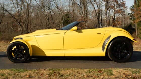 На аукционе Bring a Trailer появился этот же автомобиль Plymouth, но с другой установкой. Модификация 1999 года выпуска оборудована Hemi V8, объемом 6,1 литра с двухходовым радиатором, эффективным распредвалом и коллекторами из нержавеющей стали. Транспортное средство окрашено в цвет Prowler Yellow, а его колеса покрыты черной порошковой краской.Plymouth - подразделение по сборке минивэнов и легковых машин в составе американской корпорации Chrysler, существовавшее с 1928 по 2001 годы. В 1957 году марка заняла третью позицию в перечне компаний США по объемам продаваемой продукции, тогда ее продажи увеличились на 200 тысяч единиц. В 80-х Plymouth сотрудничал с Mitsubishi и затем выпускал машины под японским брендом.
