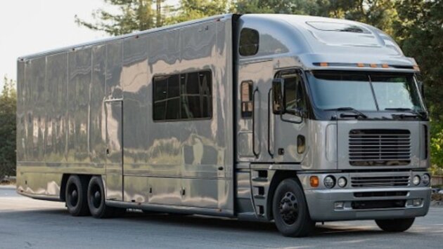 На вторичном рынке нечасто можно встретить гоночные транспортёры в виде домов на колёсах. В Сети опубликовали снимки одного из таких образцов, выставленных на продажу. Речь идёт о бескапотном американском тягаче Freightliner Argosy, выпущенном в 2000 году.