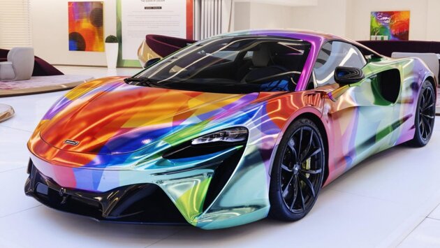 Автомобильный производитель McLaren сделал заказ британской художнице Нэт Боуэн, которая знаменита своими разноцветными полотнами, и попросил изменить внешний вид спорткара Artura.