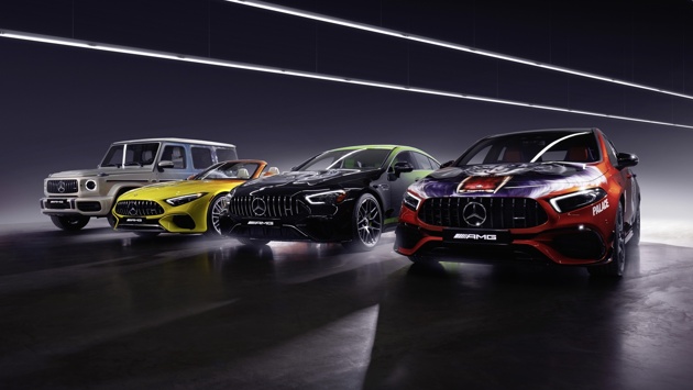 Основой арт-каров Mercedes-AMG и Palace Skateboards стали хэтчбек A 45 S, лифтбек GT 63 4Matic+, родстер SL 63 4Matic+ и внедорожник G 63. Все машины окрашены семислойной краской с градиентом, декорированы логотипами AMG и Palace. Для отделки салона использована кожа эксклюзивных расцветок и индивидуально оформленные напольные коврики, плюс на подголовниках и подлокотниках сделаны тиснения в виде двойных эмблем.