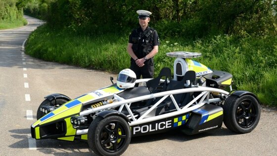 Ariel Atom. Супербыстрый для своего класса спорткар, который был подарен полиции графства Сомерсет еще в 2014 году. В оснащении транспортного средства предусматривается модернизированный двигатель, производительность которого составляет 350 л.с. Разгоняться до 100 км/час транспорт способен всего за 2.6 секунды, а предел ограничивается отметкой 250 км/час. Интересно, что в конструкции этого транспорта предусматривается только одно посадочное место. Поэтому остается вопросом - где должен располагаться пойманный преступник?