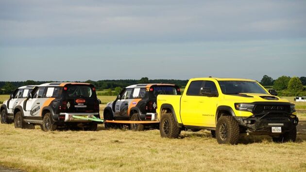Блогеры с канала carwow, которые известны своими состязаниями по дрэг-рейсингу среди самых разных автомобилей, развивают новую идею — автомобильное перетягивание каната. Но и этот необычный турнир авторы YouTube-проекта смогли сделать максимально необычным, поскольку в одной «упряжке» оказались сразу три раллийных внедорожника Land Rover Defender от компании Bowler Motors и один пикап Dodge Ram TRX, доработанный тюнинг-ателье Hennessey Performance до состояния 1000-сильного Mammoth 1000 TRX.