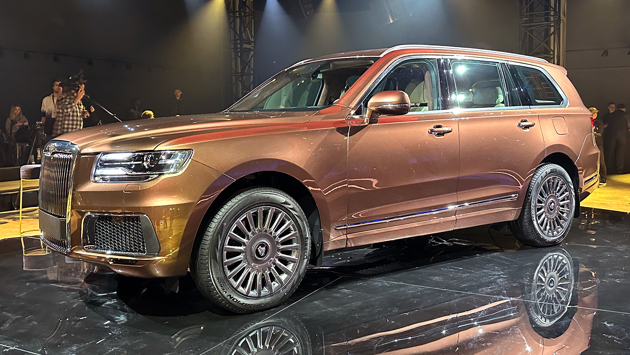 Что же касается силовой установки, то тут без сюрпризов: у внедорожника она та же, что и у седана Aurus. Она состоит из собственного V8 4.4 с двумя турбокомпрессорами и 62-сильного электромотора, «зажатого» между ДВС и девятидиапазонным автоматом российской фирмы КАТЕ. Отдача составляет 598 лошадиных сил.