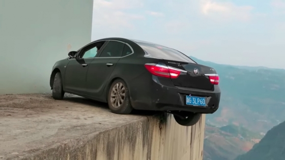 Посмотрите, как китайец разворачивается на краю обрыва
