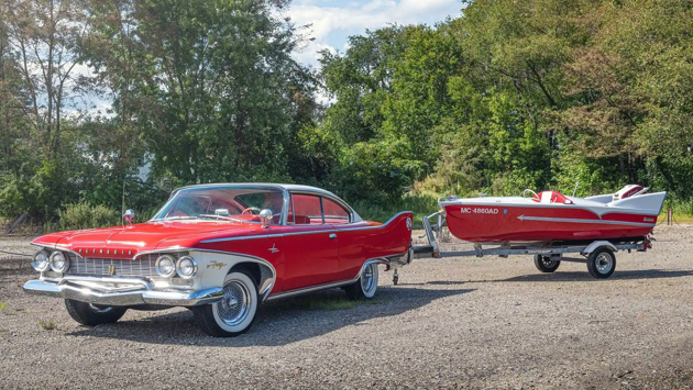 В комплекте с 62-летним Plymouth аукционисты предлагают купить моторную лодку Herter, выполненную в той же цветовой гамме и оснащённую «аналогичными» плавниками в хвостовой части. Плавсредство оборудовано подвесным мотором, мощность которого составляет 35 лошадиных сил.
