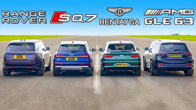 Британский YouTube-канал carwow показал на видео дрэг-гонку между новым Range Rover, Audi SQ7, Bentley Bentayga и Mercedes-AMG GLE 63 S. Сильнейшего выявили по результатам заездов с места на четверть мили на асфальте, пары гонок по пересеченной местности, стартов с хода с 50 миль в час (80 километров в час) на полмили, а финальным тестом была оценка эффективности тормозов при замедлении со 100 миль в час (161 километр в час) до полной остановки.