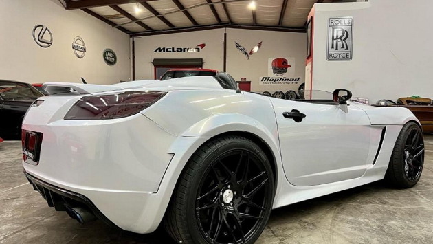 Когда в середине 2000-х компания выпустила кабриолет Sky, самой большой заботой Saturn было сохранить актуальность на безнадежно изменившемся рынке. Это не совсем удалось, но у самой машины появилось немало поклонников, и она до сих пор считается красивой, хотя и несовершенной экзотикой. Этот настроенный пример 2007MY можно купить в США прямо сейчас по умеренной запрашиваемой цене. Снаружи эта модель Sky лишена какой-либо крыши, даже съемной, и имеет два небольших лобовых стекла, установленных вместо большого цельного лобового стекла. Модификация полностью меняет восприятие автомобиля, но, к сожалению, продавец не дает информации о ответственном за это тюнере. Не менее интересно обстоит дело и под капотом, где 2,4-литровый безнаддувный четырехцилиндровый двигатель обычно выдает 180 л.с. и 224 Нм крутящего момента. Слабый двигатель, вероятно, был главным предметом критики оригинального автомобиля, когда он дебютировал (он был довольно дорогим). Этот конкретный пример, с другой стороны, скрывает в моторном отсеке гигантский шестилитровый V8 мощностью примерно 400 л.с. и 540 Нм крутящего момента. Механическая коробка передач передает мощб на заднюю ось. Компания Certified Motors просит 30 000 долларов за единственную базу Saturn Sky Base, в которой больше нет ничего «базового».