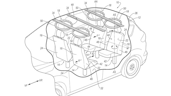 Стало известно о том, что американская компания Ford подала патентную заявку на расположенные в крыше подушки безопасности. Заявка была подана в Бюро по патентам и товарным знакам США 7 апреля 2021 года и опубликована 13 октября 2022 года. В ней показаны кольцеобразные корпуса, установленные над каждым из сидений, из которых будут раскрываться подушки безопасности. Кроме того, на чертежах патентной заявки изображены элементы, которые будут открываться вокруг пассажиров автомобиля в случае ДТП. Подушка состоит из цилиндров, которые будут надуваться и обеспечивать эффект поглощения удара, подобный обычным подушкам безопасности. Ford заявил, что эта технология разработана для использования в пассажирских и коммерческих автомобилях с различными типами кузова, включая седаны, купе, пикапы, внедорожники и минивэны.