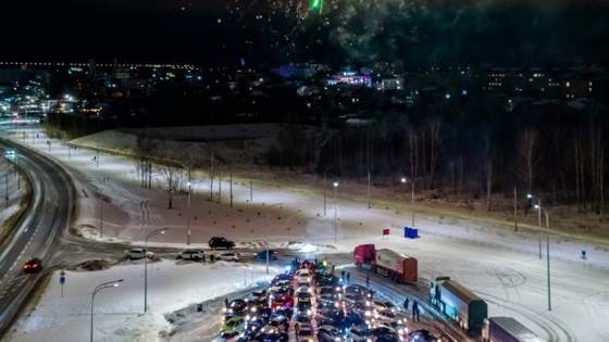 Новогодний флешмоб организовали автомобилисты и волонтеры на Бору. Фотография опубликована в городском паблике в соцсети «ВКонтакте».