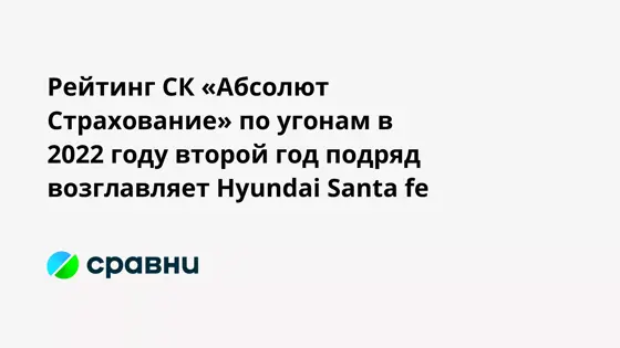 Рейтинг СК «Абсолют Страхование» по угонам в 2022 году второй год подряд возглавляет Hyundai Santa fe