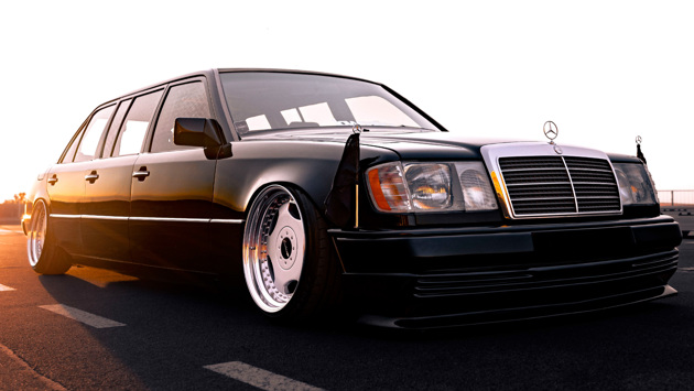 Можно сказать, перед нами несбывшийся Mercedes Pullman поколения W124. Ну, или Майбах — называйте как хотите. А всё началось с того, что ребятам из немецкого проекта Lownatics, которые строят низкие тачки, потребовалась большая машина для перемещения всей командой. И так они, наверное, и купили бы какой-нибудь минивэн, если бы им на глаза не попался стильный «Волчок»... Ну ладно, это был не Е 500, а «обычный» сто двадцать четвертый с двумя лишними дверями. Правда, его состояние было крайне ушатанным, и несколько месяцев тюнеры потратили на его восстановление, покраску, и конечно, тюнинг. И тут, поверьте, есть на что посмотреть.