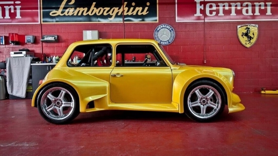 Широкие крылья — еще один признак того, что это не обычный MINI. Под капотом находится 1,8-литровый четырехцилиндровый двигатель B18C Honda, который, очевидно, развивает 350 л.с. (расчетная мощность 388 л.с. / 289 кВт) благодаря турбокомпрессору Innovative Turbo Systems.