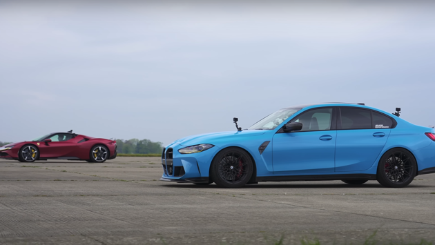 Авторам канала Carwow не в новинку проводить гонки по прямой с участием эксклюзивных суперкаров и массовых моделей, включая их доработанные варианты. В своей очередной дуэли блогеры свели бензо-электрический суперкар Ferrari SF90 Stradale, соперником которому на сей раз стал суперседан BMW M3 последнего поколения, который претерпел вмешательство специалистов по тюнингу. В итоге получилось достаточно зрелищное сражение двух разных по стоимости автомобилей.