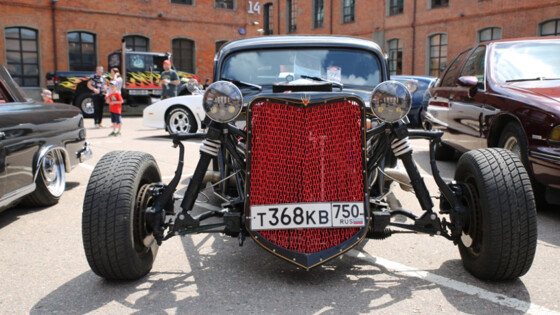 Одним из ярких экспонатов конвенции стал Москвич 401 Алексея Зубкова. Автомобиль полностью переделан и имеет пространственную раму, что придает ему еще большей брутальности.