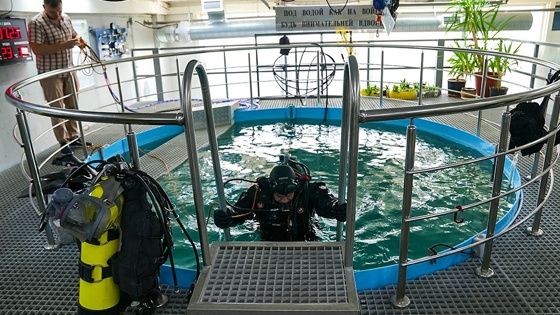 И продолжает: "Мы работаем как научно-производственное предприятие. У нас есть свои испытательные базы. И водолазная, и высотная. Все, что мы делаем, мы проверяем сначала на автоматах, на приборах. Только потом - на людях. У нас есть свой бассейн, есть специальная камера, которая может как охлаждаться до 65-70 градусов, так и прогреваться до 100 градусов. В ней проходят испытания оборудования на людях. Есть высотная камера".
