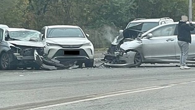 В результате инцидента пострадали два человека. Фото: социальные сети Сегодня днем на улице Воронежской в Хабаровске произошло массовое ДТП. Участниками аварии стали несколько автомобилей, включая Hyundai Sonata, Honda Legend, такси Toyota Corolla Fielder и Lexus. Как сообщили в городской Госавтоинспекции, водитель Hyundai Sonata двигался по Воронежской в направлении от Николаевской к Бондарю, и при повороте налево не уступил дорогу, что привело к столкновению с Honda Legend. Фото: социальные сети После этого Honda на скорости столкнулась с автомобилями Toyota Corolla Fielder и Lexus, собрав их в кучу.В результате этого ДТП пострадали два человека, и их доставили в больницу. Сотрудники ДПС расследуют все обстоятельства случившегося.