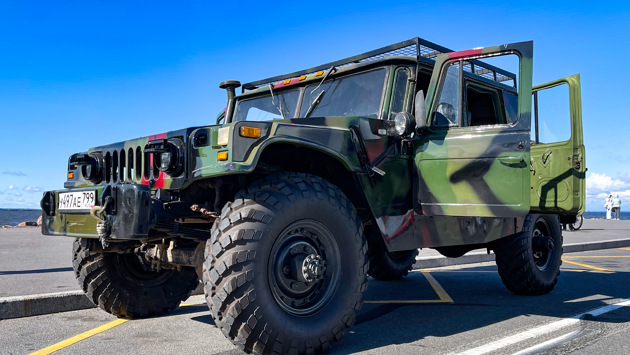 Представьте себе классический Hummer, на котором по Голливуду разъезжает Арнольд Шварцнеггер. Но вот внедорожник паркуется рядом с вами, его боковые двери открываются и… вы видите что-то до боли знакомое и родное. Во-первых, эти двери сняты с не менее легендарной «Шишиги» или просто ГАЗ-66. Во-вторых, сзади они открываются против хода как в каком-нибудь Rolls-Royce. В общем, покупая такой «американский» автомобиль, вам не придется годами ждать запчасти из-за океана — подойдет и обычный автомагазин около дома.