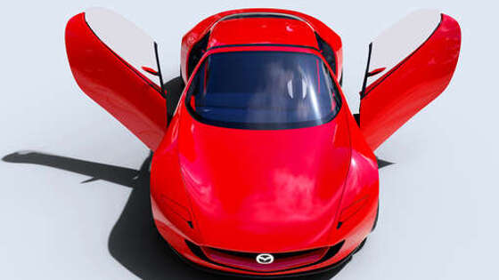 На автошоу в Токио Mazda представила концепт Iconic SP со скрытыми фарами, подъемными дверями и роторным двигателем в основе гибридной силовой установки. Габаритная длина автомобиля - 4180 мм, колесная база - 2590 мм, масса - 1450 кг. Силовая установка машины развивает максимальные 370 л.с. У Iconic SP низкий центр тяжести для обеспечения устойчивости на дороге. С целью улучшения ходовых качеств инженеры также обеспечили распределение массы по осям в пропорции примерно 50:50. Роторный двигатель, применяемый для выработки электроэнергии на борту, может работать на разных видах топлива, в том числе на водороде. Для концепта был разработан специальный цвет Viola Red. Гибридная силовая установка машины также может обеспечивать электропитанием внешние потребители энергии - это может потребоваться в случае отдыха на природе или при стихийном бедствии.