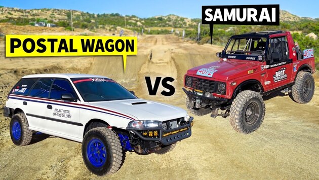 Видео: универсал Subaru Legacy и вездеход Suzuki Samurai сразились в гонке по бездорожью