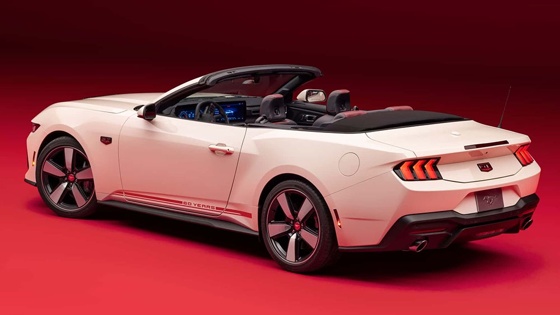 Юбилейный Мустанг можно купить в белом цвете Wimbledon White, в который был окрашен кабриолет 1964 года, снявшийся в киноленте "Голдфингер" с Шоном Коннери в роли агента 007. Также Ford Mustang 60th Anniversary доступен в красном цвете Race или синем Vapor с серебристыми корпусами боковых зеркал.
