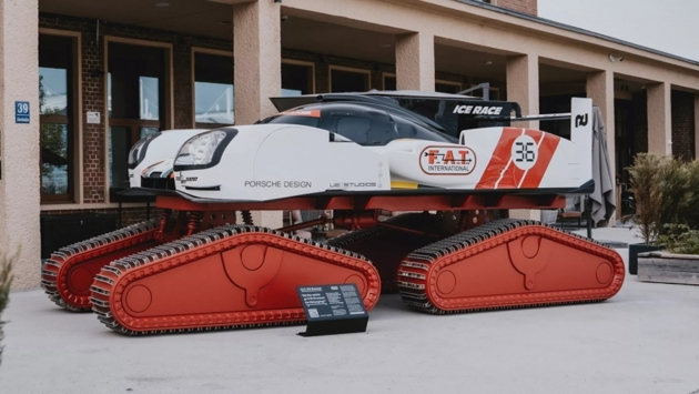 На форуме Car Design Event 2024 в Мюнхене, Германия, Porsche показал гоночный болид, установленный на гигантские гусеницы. Изначально его собрали для снежной вечеринки FAT Mankei 2023, проходившей в австрийских Альпах.