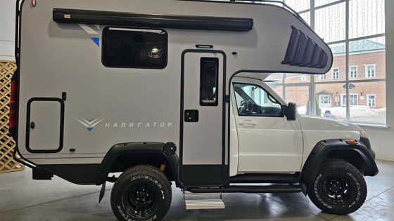 «Навигатор» сделан из обычного «Патриота», однако в раму добавлена врезка, увеличен задний свес, а вместо задних сидений появился огромный жилой модуль из сэндвич-панелей. Максимальная масса не превышает 2,5 тонны, так что управлять автодомом можно с правами категории B. Техника стандартная, поэтому кемпер заметно «прожорливее» исходника: расход бензина превышает 20 литров на 100 километров!