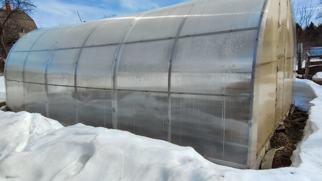 Некоторые дачники убеждены, что снег в теплице согревает землю, а это, в свою очередь, благоприятно сказывается на урожайности культур, которые выращивают в защищенном грунте. Однако Михаил Воробьев развеял этот миф.