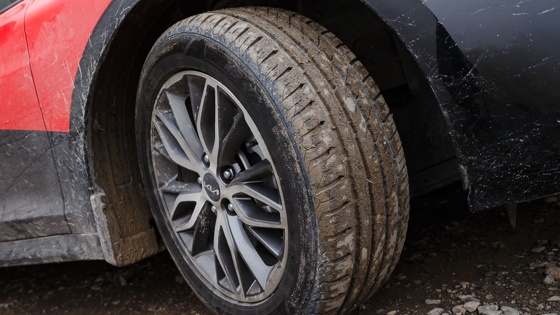 Конечно, не обошлось и без грунтовых дорог. Причем движение по ним осложнилось сильным дождем. Для вождения это не очень хорошо. Но для тестирования шин - то, что надо. И в таких условиях опять порадовала довольно жесткая боковина, которая позволяет и на плохих дорогах поддерживать высокую скорость движения.