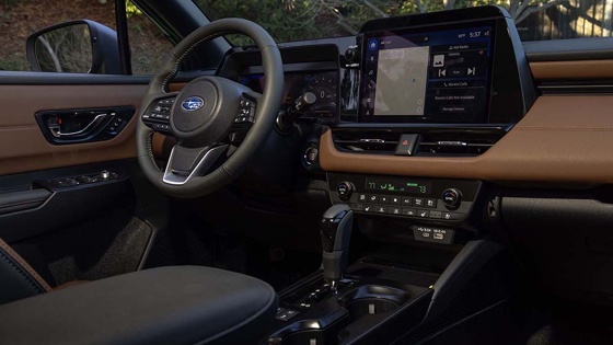 Салон преобразился: за исключением руля, всё новое. У Outback теперь полностью цифровая приборная панель на экране 12,3 дюйма, мультимедиа получила горизонтальную ориентацию (диагональ тачскрина 12,1 дюйма), а блок управления климатом получил аналоговые клавиши управления.