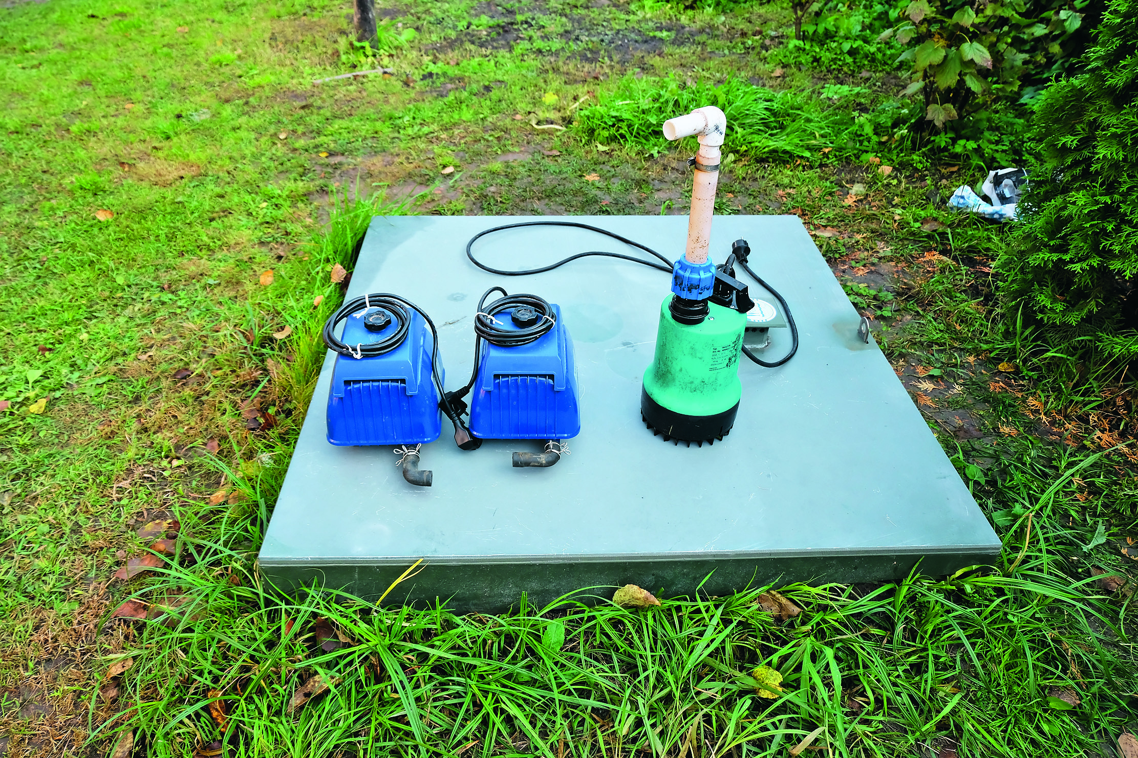 Теперь откачаем содержимое колодца и закроем теплоизоляционную крышку станции. Кстати, дополнительное утепление на зиму не помешает.