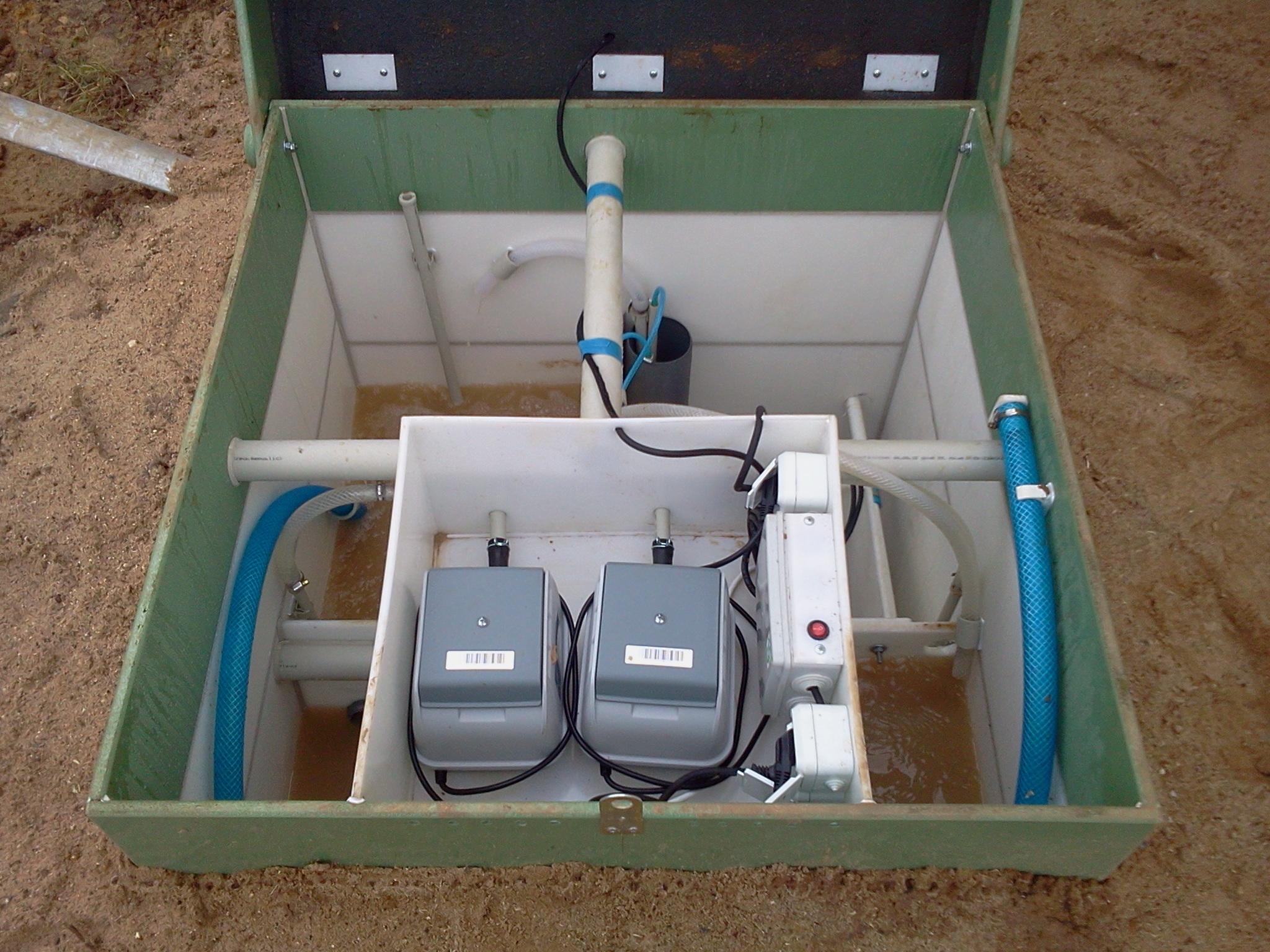 Процедура несложная. Устанавливаем воздушные компрессоры и дренажный насос в систему. Подключаем их к розеткам в соответствии с маркировкой. Подсоединяем патрубки к трубам системы, надёжно затягиваем хомуты. Проверяем уровень воды в дренажном колодце и в случае его переполнения откачиваем лишнее. Подключаем очистную станцию к электросети и включаем питание.