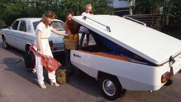 Эксперт Канунников рассказал про прицепы-дачи и моторхоумы времен СССРКлуб автопутешественников В 1964 году москвичи с изумлением рассматривали 45 туристических автопоездов, включающих просторные жилые прицепы Airstream – колонна энтузиастов американского клуба Wally Byam Caravan, путешествующих по всему миру, посетила и Москву. Кто-то смотрел на все это просто с удивлением, иные – с завистью. Ведь со второй половины 1950-х годов интерес к автотуризму в СССР был огромен. О туризме на автомобилях писала пресса, о нем снимали популярные и художественные фильмы. Кстати, в них быт советского моторизованного туриста показывали вполне реалистично. В картине «К черному морю» 1957 года путешественники с трудом находят места в придорожных гостиницах. А в фильме «Три плюс два» 1963 года героини ночуют в палатке, а герои – в салоне Волги и даже на багажнике на крыше автомобиля. На волне интереса к автотуризму в Москве уже в 1957 году провели выставку соответствующего оборудования и снаряжения. И уже на ней показали прицеп-дачу. Правда, не заводской, а сделанный энтузиастом-автопутешественником. Первый заводской жилой прицеп РАФ-04, сделанный в Риге, появился уже в 1958 году. По сути, он представлял собой «кусок»» микроавтобуса РАФ. Прицеп был рассчитан на четверых – два подвесных спальных места расположили под потолком. В комплект входили раскладной стол и стулья. В прицепной даче были шкаф и ящики для скарба. А вот электропроводки в рижском прицепе не было. Для приготовления пищи предусмотрели керогаз (разновидность керосинки), а для освещения – керосиновую лампу. Масса всего этого туристического счастья составляла около 950 кг. При этом мощность двигателя Победы была всего-то 52 л.с., а недавно появившейся Волги – 75 сил. Так что машины тех лет потянули бы РАФ-04 с большим трудом. Впрочем, РАФ-04 все равно остался лишь опытным образцом. Зато самодельщики смело взялись за постройку собственных прицепных дач. Поскольку и грузовых прицепов к легковым автомобилям советская промышленность пока не выпускала, энтузиасты сами изготавливали основу и делали подвески. На одном из первых прицепов, который «За рулем» описывал в 1969 году, подвеска была независимой, да еще и с передним стабилизатором от Волги ГАЗ-21. Как правило, жилую часть прицепа делали из фанеры толщиной 4-5 мм, для пола использовали фанеру 10 мм. Использовались брезентовые боковины и тенты. Но уже во второй половине 1960-х годов появились конструкции с жесткими стенками из фанеры, а иногда и из пластика. Наиболее продвинутые строители автодач оборудовали их электропроводкой и емкостями с запасом питьевой воды. Самые комфортабельные дачи имели массу до 450 кг. Позднее в СССР ввели правило: прицеп без собственной системы тормозов мог иметь массу до 420 кг, с тормозами – до 840 кг. Самые тяжелые караваны рекомендовали буксировать только Волгой. Самый популярный прицеп-дача СССР Первым заводским жилым прицепом стал киевский Турист-1, который анонсировали в 1969 году, а в производство запустили в 1971-м. В прицепе, который можно было использовать и как грузовой, была раскладная палатка, благодаря которой турист получал дачу с верандой габаритами 4000×3250 мм. Но более массовым и популярным, а одно время даже культовым, среди автотуристов СССР стал прицеп Скиф уральского завода «Искра». Прицеп в транспортном состоянии длиной все