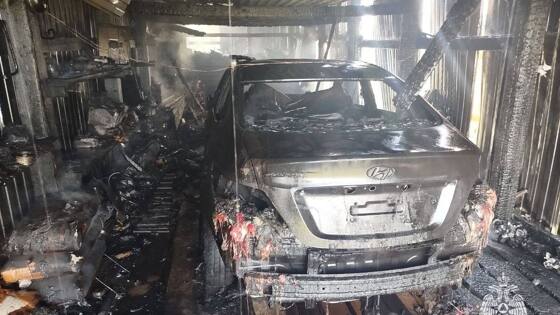 В результате пожара уничтожен гараж, построенная в нем баня и сам автомобиль.