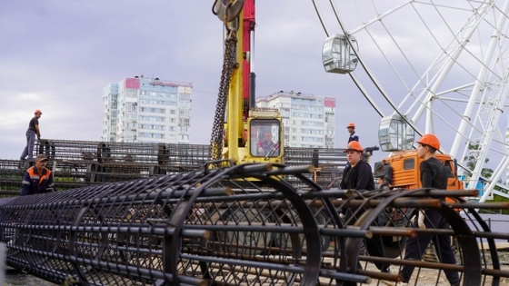 Согласно информации ЦПКиО, специалисты уже приступили к буровым работам с использованием тяжелой техники общей массой более 230 тонн. Под фундамент опор планируется забетонировать свыше 100 армированных каркасов на глубине около 20 метров.