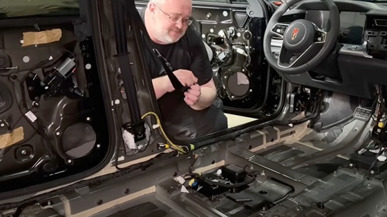 При этом эксперт обратил внимание на упрощенные решения: крепление ремней безопасности болтами малого диаметра, открытые сварочные швы и видимую проводку в петлях крышки багажника.