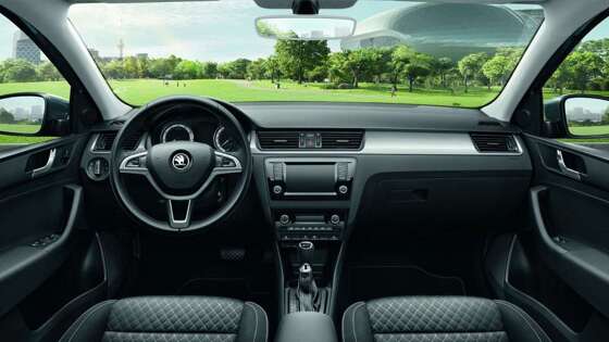 Архитектура передней части салона Rapid унаследована от родственного седана Volkswagen Polo, и по меркам своего класса интерьер отделан качественно.