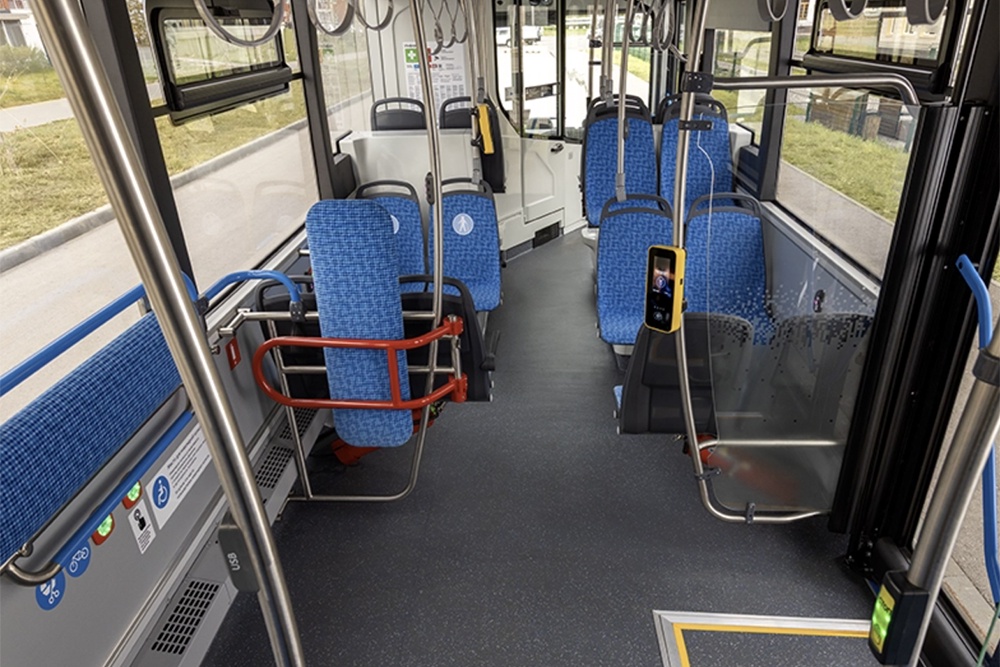 В салоне предусмотрены антивандальные сиденья, климат-контроль, мультимедийные экраны, USB-разъемы и Wi-Fi. Все элементы крепления выполнены на бортах кузова, что облегчает уборку и обслуживание.