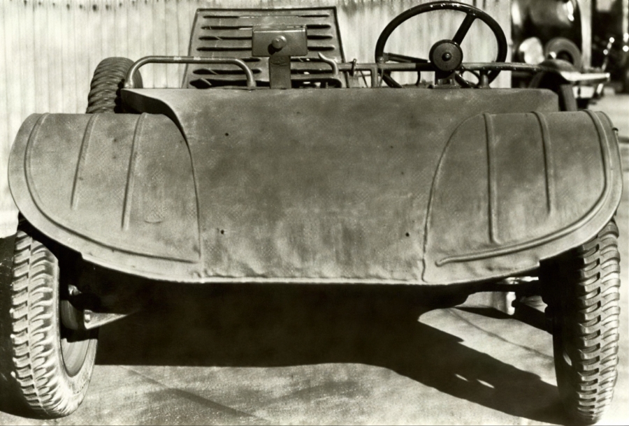 Прототип получил независимую подвеску и двухцилиндровый оппозитный двигатель JAP с воздушным охлаждением, установленный прямо на задней оси. На фото хорошо виден крупный воздухозаборник.