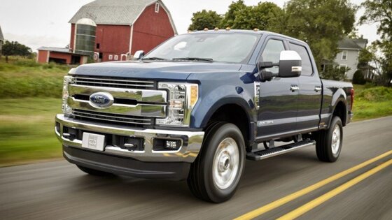 Тяжелые пикапы Ford F-250 и F-350 Super Duty 2017 модельного года, представленные сегодня на промышленной ярмарке штата Техас, впервые в истории модели получили алюминиевые кузова. Как сообщает пресс-служба Ford, это нововведение позволило сделать автомобили почти на 160 кг легче по сравнению с предшественниками, одновременно с этим увеличив грузоподъемность и максимальный вес прицепа. Помимо этого, рама коробчатого сечения теперь на 95% состоит из высокопрочной стали, благодаря чему ее жесткость увеличилась в 24 (!) раза; выросла также прочность осей, компонентов полного привода, буксировочного оборудования. Внешность грузовиков не изменилась, но при этом выросла длина кабины во всех вариантах компоновки, а также полностью обновился дизайн интерьера. В Ford отмечают, что старшие представители F-серии, обновленные вслед за F-150, получили целых 16 опций, недоступных у конкурентов тех же классов. Среди них, например, полностью светодиодная светотехника, включая передние и задние фары, а также подсветку грузового отсека. Задний грузовой борт теперь откидывается дистанционно, изнутри кабины можно следить за давлением в шинах и поведением прицепа (для этого на него устанавливается специальная камера — одна из семи доступных водителю). Также Ford F-250 и F-350 теперь оснащаются адаптивным рулевым управлением и таким же круиз-контролем с функцией предупреждения о столкновении, системой контроля «слепых зон» (включая пространство за прицепом), информационно-развлекательной системой Sync 3 с 8-дюймовым тачскрином. Набор двигателей и их характеристики остались прежними, а цены будут известны ближе к началу продаж, запланированному на 2016 год.