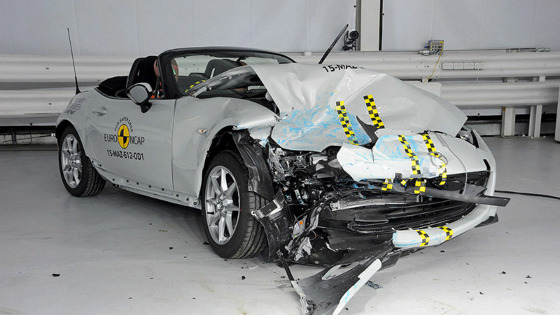 Европейская организация Euro NCAP провела краш-тест трех новинок: кроссовера Hyundai Tucson, компакт-кара Opel Karl и родстера Mazda MX-5. Последний не смог удостоиться высшего балла, получив четыре звезды из пяти возможных. Mazda MX-5 успешно прошла почти все виды испытаний, хотя специалисты выявили риск получения травм грудной клетки при боковом столкновении со столбом. Кроме того, родстер показал хорошую степень защиты детей, а также пешеходов, благодаря активному капоту, приподнимающемуся при столкновении. Тем не менее, Mazda MX-5 не смогла заработать максимальную оценку из-за отсутствия системы автоматического экстренного торможения, которая «доступна для большинства схожих по цене машин как минимум в качестве опции». С 2014 года наличие этой функции является обязательным критерием для получения высшего балла на испытаниях. Результаты краш-теста родстера Mazda MX-5 Защита взрослых пассажиров Защита детей Защита пешеходов Электронные помощники Общая оценка 84% 80% 93% 64% Четыре звезды Компакт-кар Opel Karl также заработал четыре звезды из пяти возможных. Показания, снятые с датчиков манекенов, выявили слабую защищенность груди пассажиров и плохую защищенность ног водителя при лобовом столкновении по всей ширине машины. Кроме того, обнаружен риск получения тяжелых травм при боковом ударе о столб, а также вероятность хлыстовых травм при столкновении сзади. Результаты краш-теста Opel Karl Защита взрослых пассажиров Защита детей Защита пешеходов Электронные помощники Общая оценка 74% 72% 68% 64% Четыре звезды Единственной моделью, удостоившейся пяти звезд, стал кроссовер Hyundai Tucson нового поколения (ранее в Европе продавался под названием ix35). Специалисты отметили, что безопасность вседорожника значительно выросла по сравнению с предшественником, хотя система экстренного торможения по-прежнему доступна только в качестве опции. Результаты краш-теста Hyundai Tucson Защита взрослых пассажиров Защита детей Защита пешеходов Электронные помощники Общая оценка 86% 85% 71% 71% Четыре звезды Ранее организация Euro NCAP провела краш-тесты девяти новых моделей, среди которых был Volvo XC90 второго поколения. Внедорожник шведской компании получил самый высокий балл за защиту взрослых пассажиров за всю историю испытаний (97 процентов).