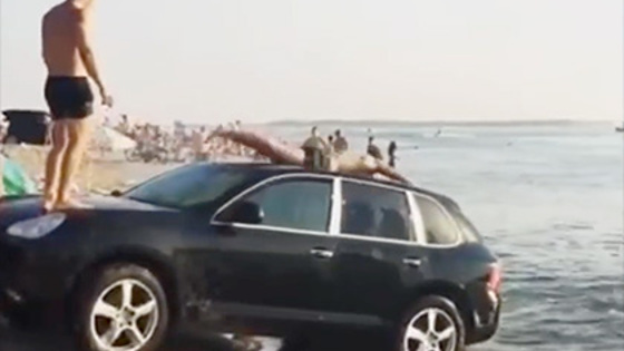 Жители Волгограда купались в Волге, используя Porsche Cayenne как горку и трамплин для прыжков в воду. Видео опубликовал на своей странице на YouTube портал «Блокнот Волгоград». По его информации, молодые люди приехали на кроссовере на пляж хутора Бобры. Они припарковали автомобиль у воды и скатывались в реку с его крыши. Развлечение компании запечатлели на видео другие отдыхающие.