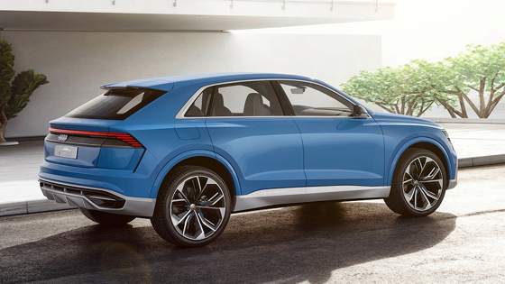 На автошоу в Детройте состоялась мировая премьера нового концепта Audi, который дает представление о готовящемся самом большом кроссовере марки. Прототип Q8 получил купеобразный кузов и гибридную силовую установку с возможностью подзарядки батарей от розетки. Концепт-предвестник по габаритам превосходит Q7 второго поколения. При 5,02 метра длины, 2,04 метра ширины и 1,7 метра высоты Q8 получил трехметровую колесную базу. Объем багажника составляет 630 литров. В дизайне кроссовера, как отмечают разработчики, содержатся отсылки к классической модели quattro из 1980-х (например, широкие задние стойки). Вместе с тем, по стилю Q8 стал продолжением серии концептов Prologue. Прототип самого большого вседорожника марки оснастили гибридной силовой установкой. Отличительными элементами дизайна также стали 23-дюймовые колесные диски, агрессивный обвес с большими воздухозаборниками спереди и диффузором сзади, боковые стекла без рамок и отсутствующие ручки дверей.