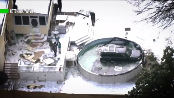 В Северной Каролине один водитель, похоже, перепутал педали газа и тормоза и, протаранив гаражные ворота, заглох в бассейне. Замёрзшая вода крепко сковала автомобиль.