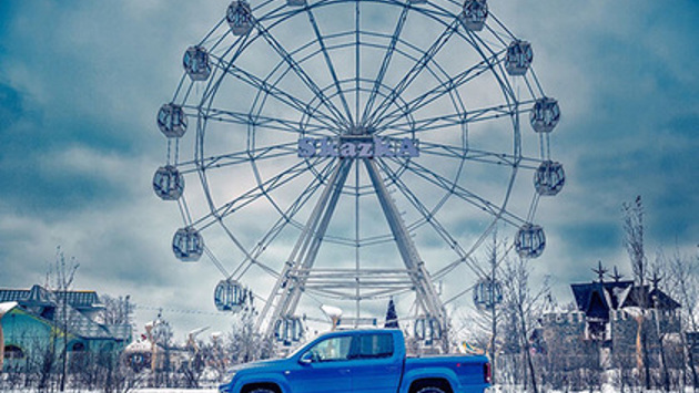 Пикап — любимый автомобиль американских реднеков, австралийских фермеров и членов запрещенных в России организаций. Мы перенесли новый Volkswagen Amarok из естественной среды обитания в московские пробки, чтобы понять, легко ли пикапу живется в городе, кому он тут нужен и способен ли пикап быть премиальным. Один из моих друзей детства переехал в Канаду. Начал играть в американский футбол, раскачался, практически забыл русский язык и превратился из Миши в Майкла. Носит ботинки Timberland с клетчатой рубашкой и купил себе пикап. Именно тот пикап, который я представляю себе, когда слышу это слово. С огромным «кенгурятником», банками из под пива в кузове и вмятинами на капоте, видимо, от сбитых на дороге оленей. Миша, то есть Майкл, и его пикап — абсолютно стереотипный пример, для кого и чего предназначен данный тип автомобиля. Ездить с друзьями месить грязь, возить дрова или новый холодильник для мамы. Живя в Москве, я с трудом могу представить обстоятельства, при которых мне понадобится пикап. В моей голове они всегда делились на две категории: японские, неказистые и зачастую просто уродливые, и американские — похожие в городе на слонов в посудной лавке. Так получилось, что первый пикап, с которым мне довелось познакомиться по-настоящему близко, был немецким. Новый рестайлинговый Amarok в максимальной комплектации Avventura был совсем не похож на тот образ пикапа из моей головы. Ярко-голубой, хромированные диски, хромированные подножки с подсветкой. Внутри те же кожаные спортивные сиденья, что стоят на VW Passat CC или Scirocco. Экран мультимедийной системы, знакомый по всей линейке VW, реагирующий на приближение пальца всплывающими иконками, раздельный климат-контроль, камера заднего вида, лепестки переключения передач под рулем. И самое непривычное — система Digital Voice Enhancement, электронная система усиления голоса, позволяющая пассажирам слышать говорящего через задние динамики, независимо от наличия внешних шумов. Кажется, что разговариваешь в большой пустой комнате и слышишь собственное эхо. Такая есть в Rolls-Royce, такая будет в новой Skoda Kodiak. Жизненная необходимость этого приспособления понятна в машинах бизнес и премиум-класса или в тех, где с третьего ряда до водителя не докричаться. Действительно, без проблем слышишь собеседника, даже если открыл окно в тоннеле. Как и зачем эта система оказалась в пикапе, не совсем понятно, буду считать ее приятным бонусом. Материалы отделки салона ничем не примечательны, все по-немецки лаконично, точно подогнано, пластик жесткий, но приятен на ощупь и не гремит на кочках. В конце концов, глупо было обшить кожей и алькантарой салон, в который будут садиться, будучи например, по пояс в глине. Некоторое разочарование приходит во время езды. Amarok, мягко говоря, не едет. Пока на рынок не вышла версия с трехлитровым дизелем, остается довольствоваться безальтернативным двухлитровым, на 180 лошадиных сил, которых для такой большой машины маловато, для уверенных маневров в городе или на трассе. После 60 километров в час тяга куда-то пропадает, и ее не вернешь ни педалью в пол, ни ручным переключением восьмиступенчатой коробки. Помимо этого, руль излишне легкий и совершенно неинформативный, хотя и четкий. Он крутится пальцем, но не имеет ни малейшей обратной связи, что в городе необходимо. Хотя, наверное, город совсем не его стихия, несмотря на