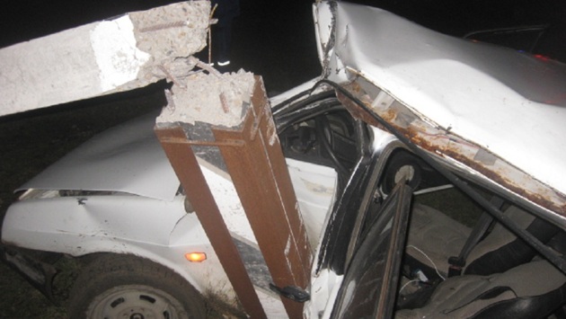 Краснодар. 16 янв. – Новая Кубань. В субботу, 14 января, разгорячённый спиртными напитками 21-летний парень решил погонять по улицам поселка в Анапском районе. Около полуночи он не справился с управлением своим ВАЗ 21099. Машина улетела в кювет, протаранив столб линии электропередач. Он развалился напополам. Удар пришелся на водительскую половину Девяносто девятой. Машина осталась без левого бока. Молодой лихач получил травмы. По данным УГИБДД ГУ МВД России по Краснодарскому краю, парня доставили в больницу